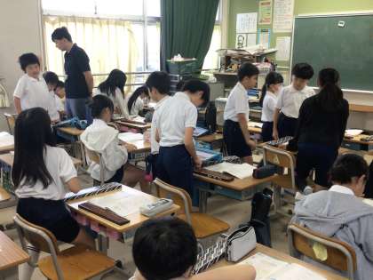正しくそろばんを使うことができたか互いに確認をしていました。