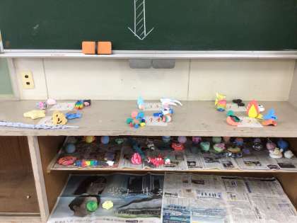 図画工作科では、紙粘土で作った「まぼろしの花」の種からどんな花が咲くのかを想像して作品作りをしていました。