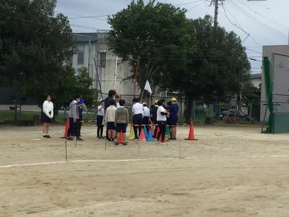 明日の運動会のために、6年生、保護者ボランティア、教職員が準備をしています。