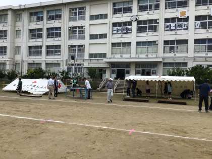 保護者ボランティアの方々には、保護者優先エリアの区分けとテント設営を行っていただきました。