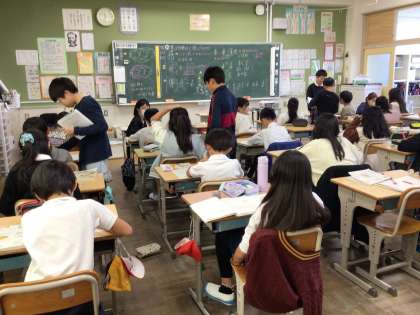 席替えをしたクラスは、新しい班で自己紹介をしていました。これからも友達のよさをたくさん見つけて欲しいです。
