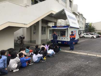 3年生は午前中にトヨタの森へ校外学習に行っていたクラスがあるので、防災教室は午後に行いました。