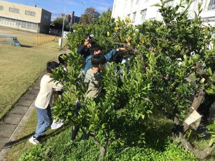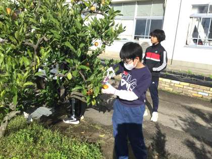 6年生は、衣丘タイムに今年度初めてのみかんの収穫を行いました。