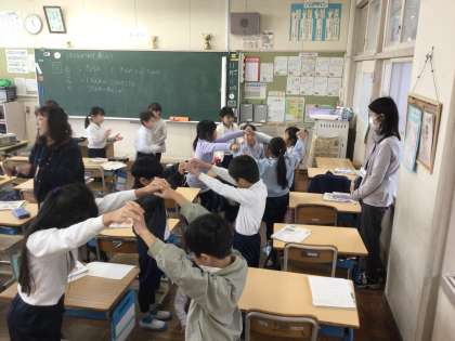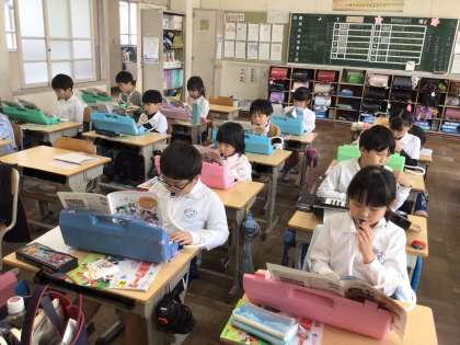 音楽の授業では、「山のポルカ」の鍵盤ハーモニカの練習をしていました。