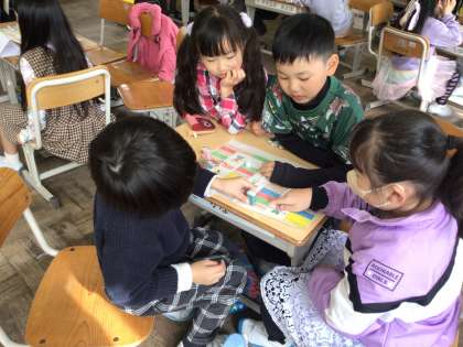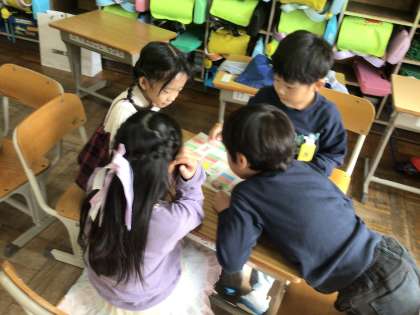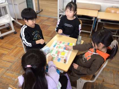 道徳「なかよしエンカウンター」では、道慈小の友達と一緒にすごろくをして遊びました。