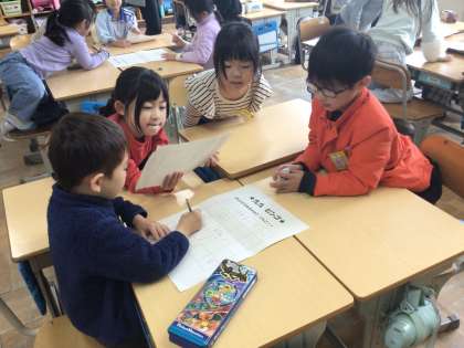 その後、道慈小の友達が九九カードを引いて、ビンゴゲームが進んでいきました。