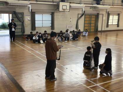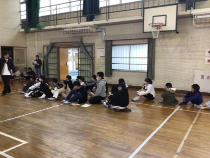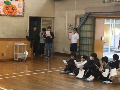 長い休み時間に体育館では、福祉委員を中心に「感謝の会」のリハーサルが行われていました。