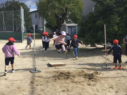 最後の踏み切りが両足にならないように、何回もチャレンジしていました。
