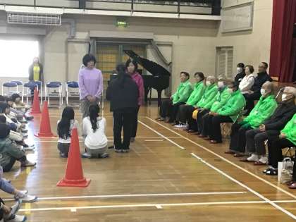 1時間目に体育館で、日頃大変お世話になっているスクールガードさんやボランティアさん、学校職員の皆さんへ感謝の気持ちを伝える会を行いました。