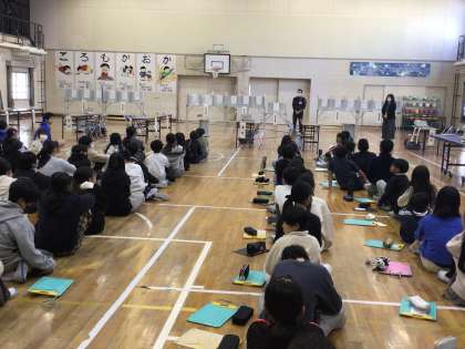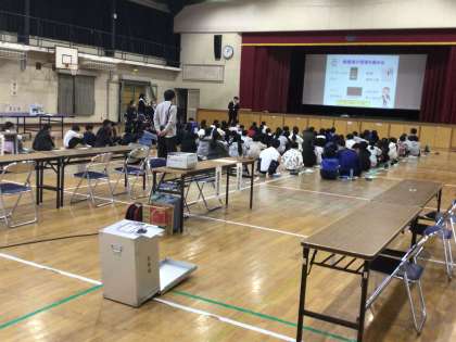 社会科の授業の一環で、選挙の重要性について理解するために、選挙管理委員会事務局の方に来ていただき、模擬選挙を体験しました。