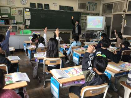 音楽科では、鑑賞教材曲「シンコペーテッド クロック」を聞く前に、教科書に載っている挿絵からどんな曲なのか想像していました。ウッドブロックやトライアングルなど楽器名も出ていました。