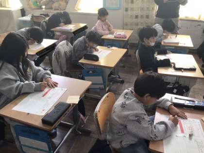 算数科「見方・考え方をふかめよう」では、テープ図を使って数量の多少を考えて問題に取り組んでいました。