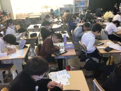 国語科では、手紙の書き方を学んだ後、年賀状を作成していました。