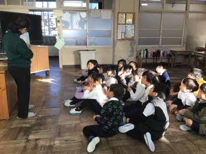 新年はじめの読み聞かせは、お正月に関する内容や冬の読み物など、子どもたちが興味をもつものばかりでした。