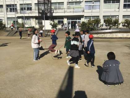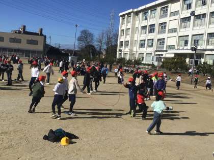 運動場では、14日のなわとび大会に向けて、長縄跳びの練習に励む姿が見られました。