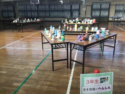 書き初め大会の作品と図画工作科で取り組んだ造形作品を展示しています。
