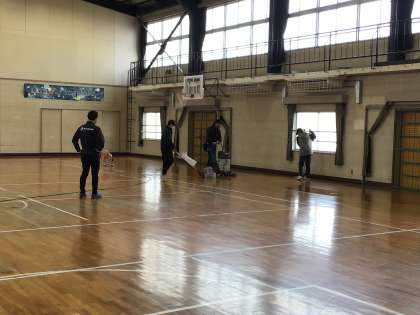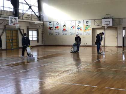 本日、業者さんに依頼して、体育館のワックスがけを行っています。