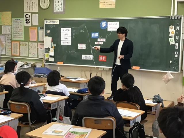 5年生は「夢の教室」で、プロなわとびプレーヤーの黒野 寛馬(ひろま)さんをお迎えしました。