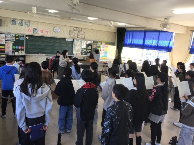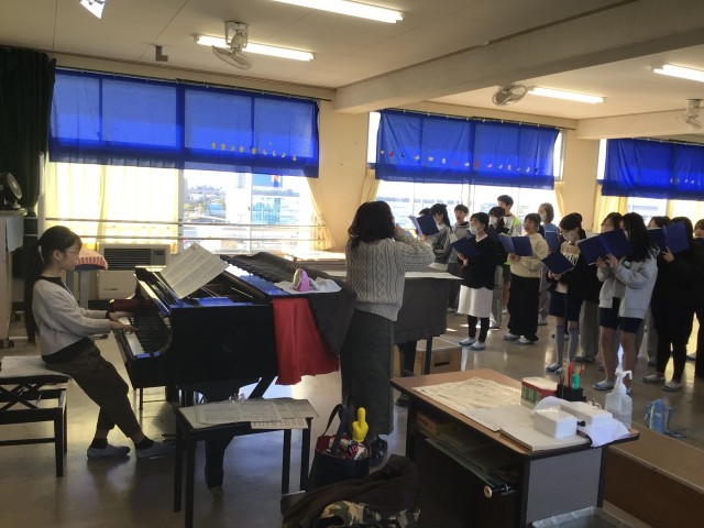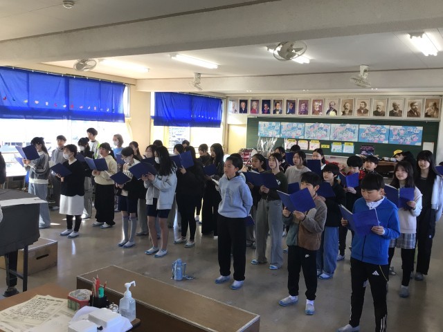 音楽の授業では、卒業式の歌の練習をしていました。