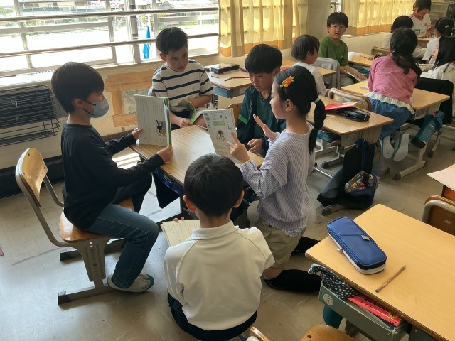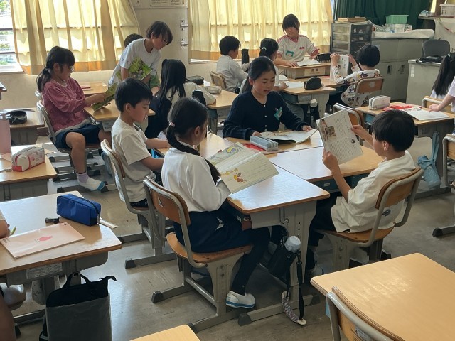 国語科では、「こわれた千の楽器」の音読練習をしていました。