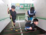 代休明けの29日(火)の朝、運動会の椅子運び等で廊下や階段に落ちた砂やほこりを6...