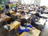 1年生は、みかんのスケッチ、2年生は、みかんの絵手紙、3年生は、みかんに関するク...