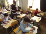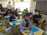 みはな学級は、箱の中身は何だのクイズです。4年生は、みかん染め、5年生は、みかん...