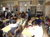 交流の様子です。1年生は自己紹介ゲーム。2年生はすごろく。みはな学級はミカンの皮...