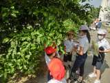 1年生と6年生のペア学年で、自分たちの班がお世話をするミカンの木に、プレートを取...