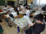 焼いた五平餅にたれをぬっています。五平餅をおいしくいただきました。終わりの会で代...