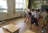児童の下校後、豊田市消防本部の職員を講師に、救急蘇生法講習会を行いました。 胸骨...