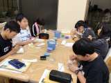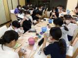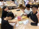 入浴した後、体験活動が始まりました。 コースは、マグカップとキツネのお面とブレス...