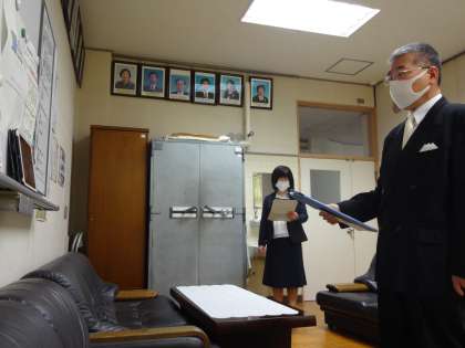 始業式では、はじめに進級認定。学年ごとに呼ばれ、元気よく「はい」と返事。校長先生のお話を聞く子どもたちのきらきらした瞳には、一つ上の学年になった喜びとこれから始まる新しい生活へのやる気が溢れていました。