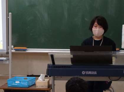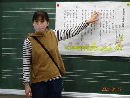 1年生は音楽の授業で校歌を習いました。6年間歌う古瀬間小の校歌。早く覚えて自信をもって歌えるようになってほしいです。