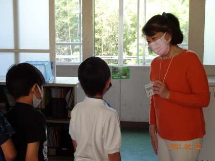 2名の外国語活動支援ボランティアさんが、子どもたちのコミュニケーション活動への声掛けやALTとの橋渡しをしてくださいました。