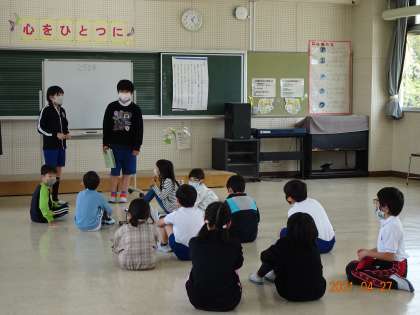 子どもたちが毎回楽しみにしている縦割り班活動「レッツ」の顔合わせを行いました。