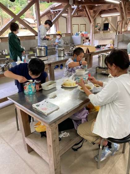 【5年キャンプ 午後の活動】6/25 公開日 2021/06/25 更新日 2021/06/25 各学年から オリエンテーリングは途中で雷が鳴ったため途中で切りやめ、次の活動のクラフトで写真入れを作りました。その後雨もやみ、野外炊飯でカレーを作り美味しくいただきました。けがや病気もなく順調に進んでいます。