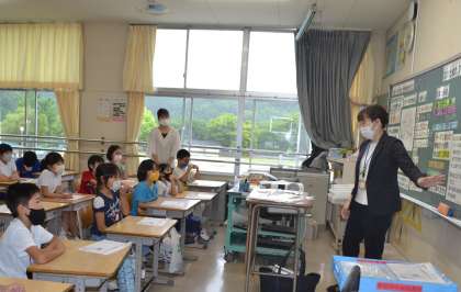 テーマの設定の仕方、調べ方、まとめ方、参考文献の書き方を学びました。みんなで考える場面やクイズがあり、子どもたちはとても楽しそうに一生懸命考える姿が印象的でした。今後の調べ学習に生かしていくことを期待しています。