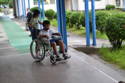 【3年 車いす体験】7/2(金) 公開日 2021/07/02 更新日 2021/07/02 各学年から 3年生が総合的な学習の一環で、福祉体験学習・車いす体験をしました。 子どもたちは、実際に車いすに乗ったり、介助をしたりしてみて、思ったより介助が大変なことや、車いすに乗っている人は、少しの段差でも生活が不便になることに気付きました。 福祉の学習を通して、子どもたちに車いすの方や障がいのある方への理解と思いやりの心を育んでいきたいと思います。