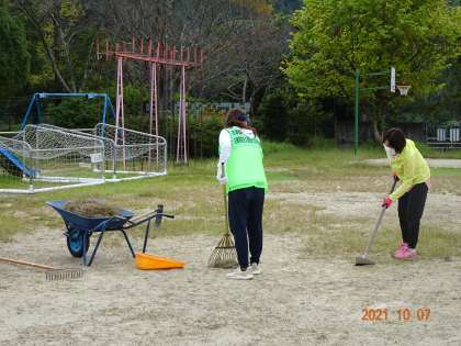 子どもたちも時間を見つけては草取りを行っており、運動会に向けた整備が着々と進んでいます。