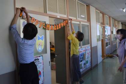 緊急事態宣言が解除となり、図書館ボランティアの活動も再開されました。子どもたちに人気の本は、ページが敗れていたり、汚れてくすんでいたりと傷みがちですが、ボランティアの皆さんが丁寧に修理をしたり磨いてくださったりしたおかげで、きれいな本に生まれ変わっていました。また、ハロウィンの飾り付けもしてくださり、子どもたちが通いたくなる図書館になりました。図書館ボランティアの皆さんのおかげで、図書館大好き、本が大好きな子どもたちが育っています。