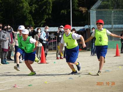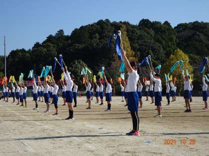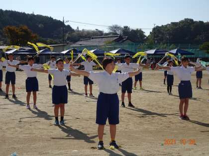 5年生は、リレーとトーチトワリング。「ピースサイン」の曲に乗って、息の合った演技を披露しました。