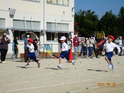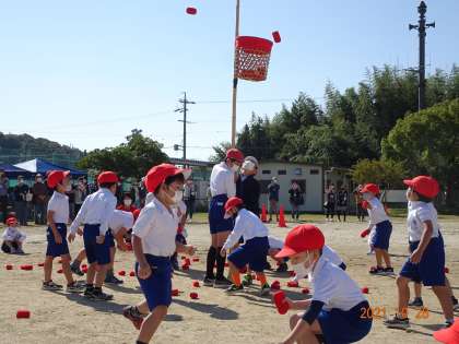 1年生にとって初めての運動会。一生懸命、玉入れやかけっこに取り組みました。
