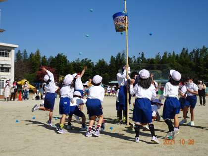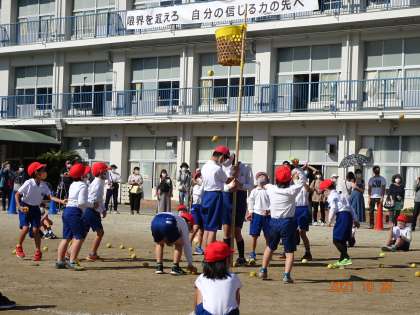 【運動会 2年生】10/28 公開日 2021/10/29 更新日 2021/10/29 学校行事 2年生は、1年生に負けまいと一人一人が真剣に玉入れに取り組みました。練習の甲斐があり、たくさんの玉を入れることができました。