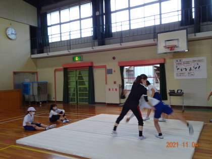 今日は、週に1回の体力向上補助指導員の先生が来てくださる日。苦手な技について、こつを教えていただいたり、補助をしていただいたりして、「なるほど」「そうやればいいんだ」とたくさん気付くことができました。