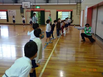 地域安全指導員さんに来校していただき、2・3・4年生が「子どもの防犯教室」を行いました。不審者に遭った場合、大声で叫ぶこと、不審者につかまれた場合は地面に寝転び、「じたばた」と足を動かして不審者の向う脛をけるようにすること、防犯ブザーはすぐに使えるようにランドセルの肩ベルトについている「防犯ブザーフック」につけるとよいことなどを実演をしながら教えていただきました。