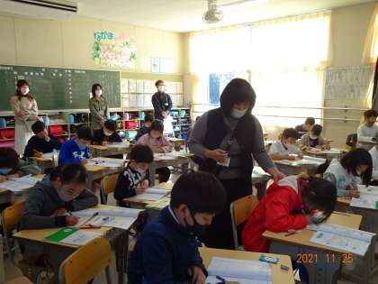3年生は算数。「かけ算の筆算」の学習に真剣に取り組みました。