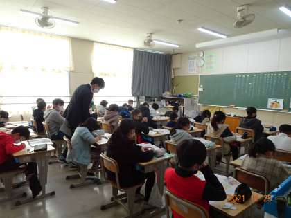 4年1組は、国語「くらしの中の和と洋」。4年2組は、道徳「交換メール」。