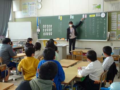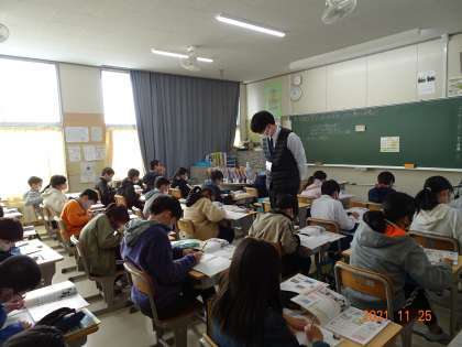 5年1組は、社会「くらしを支える工業生産」。5年2組は、国語「和語・漢語・外来語」の授業をご参観いただきました。
