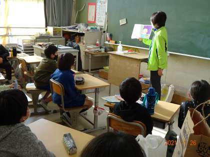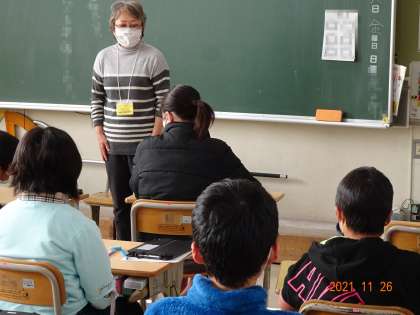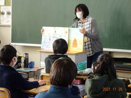 【お話の森 高学年】11/26 公開日 2021/11/26 更新日 2021/11/26 地域学校共働本部 4〜6年の「お話の森」。初冬の季節に合った物語や地域を題材にした手作りの紙芝居、語りなど4〜6年生の子どもたちの心に響くお話を準備していただき、子どもたちは、真剣な表情で、想像の世界に思いを巡らせながら聴き入っていました。 「お話の森」の皆さんの素敵なお話を聴きながら、心豊かな古瀬間っ子が育っています。 【「お話の森」の活動は、地域学校共働本部によるボランティア活動の一環です。】